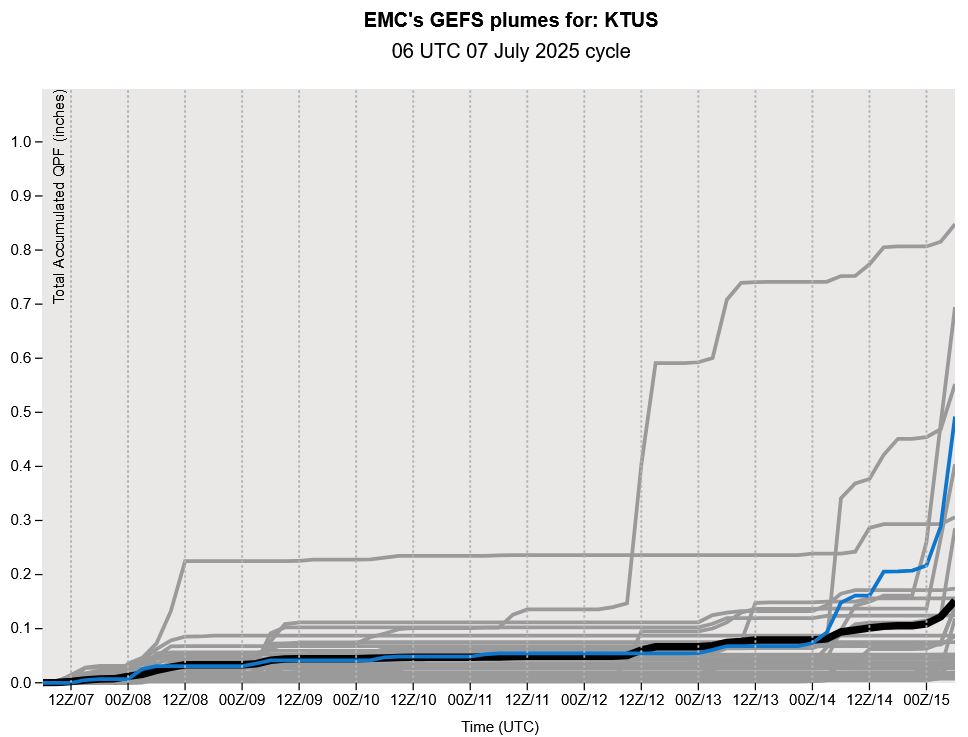 Wednesday will be the day with the least activity with the best storms in eastern New Mexico and southeast Arizona. Model forecasts are showing an increase in moisture into the low deserts on Thursday, but oddly not showing much of an increase in thunderstorm activity.
