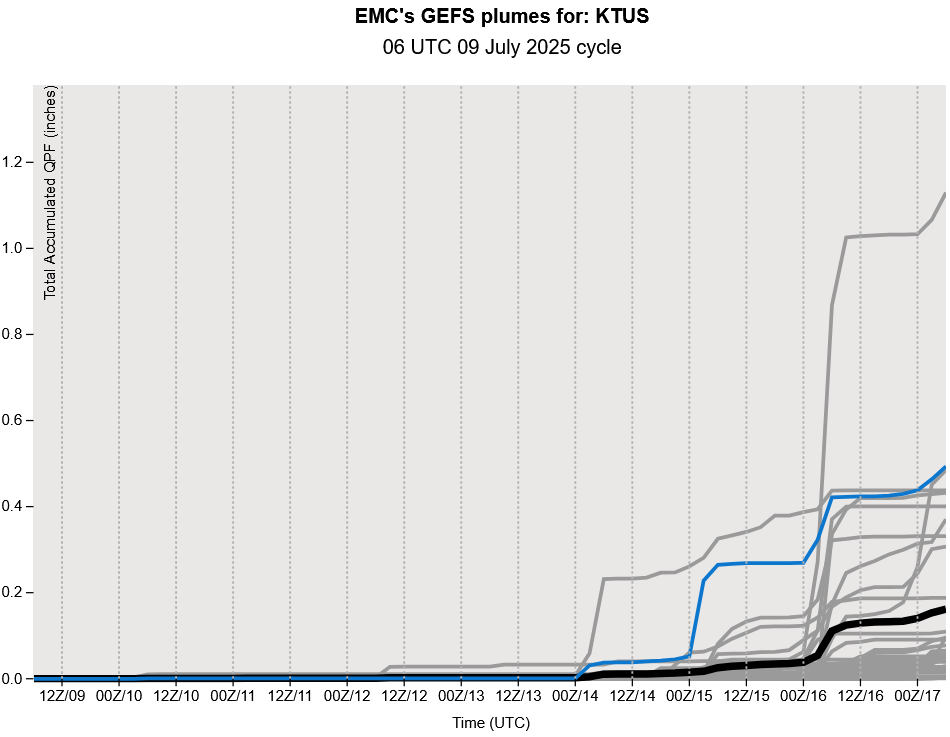 An isolated series of thunderstorms in the mountains near Ruidoso, New Mexico produced flash flooding with 2″ of rain dropping on a burn scar. The resultant flash flood in Ruidoso killed three people. In Arizona, the thunderstorm activity was mostly suppressed except for some isolated storms in eastern Pinal and Pima counties as well as around Flagstaff. Rainfall amounts were slight above a half inch in the mountains, with lesser amounts as the storms tried to move into valley locations. The deserts started drying out without any storms in the Phoenix metro area. Here’s the observed precipitation accumulation from MRMS (rain-gauge-corrected satellite and radar estimated precip totals).