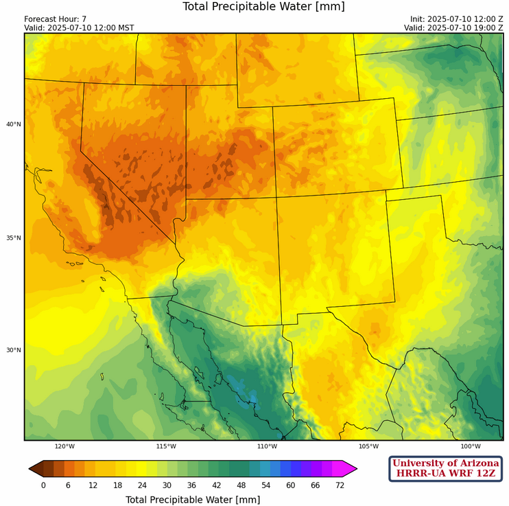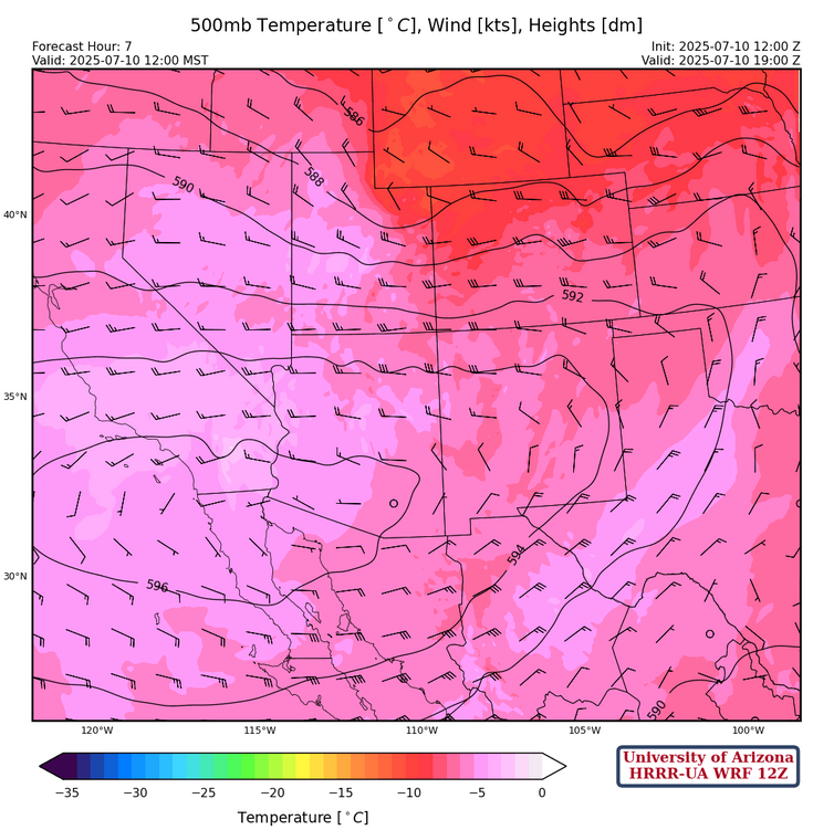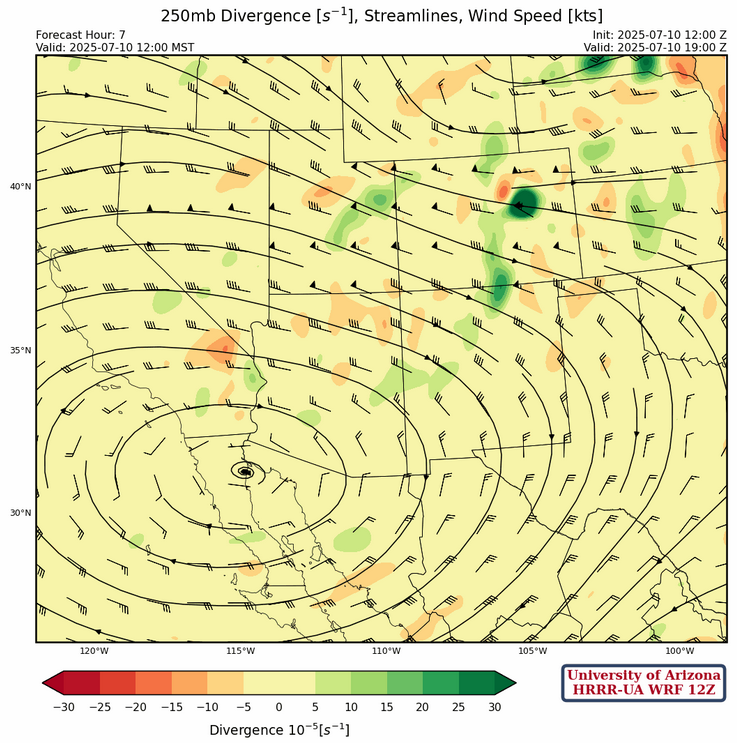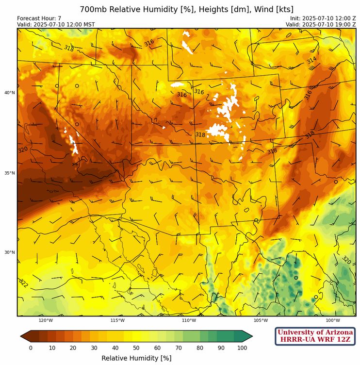 700mb westerly winds have dried out northern Arizona and northwest New Mexico, as the ridge has shifted to near Puerto Penasco.