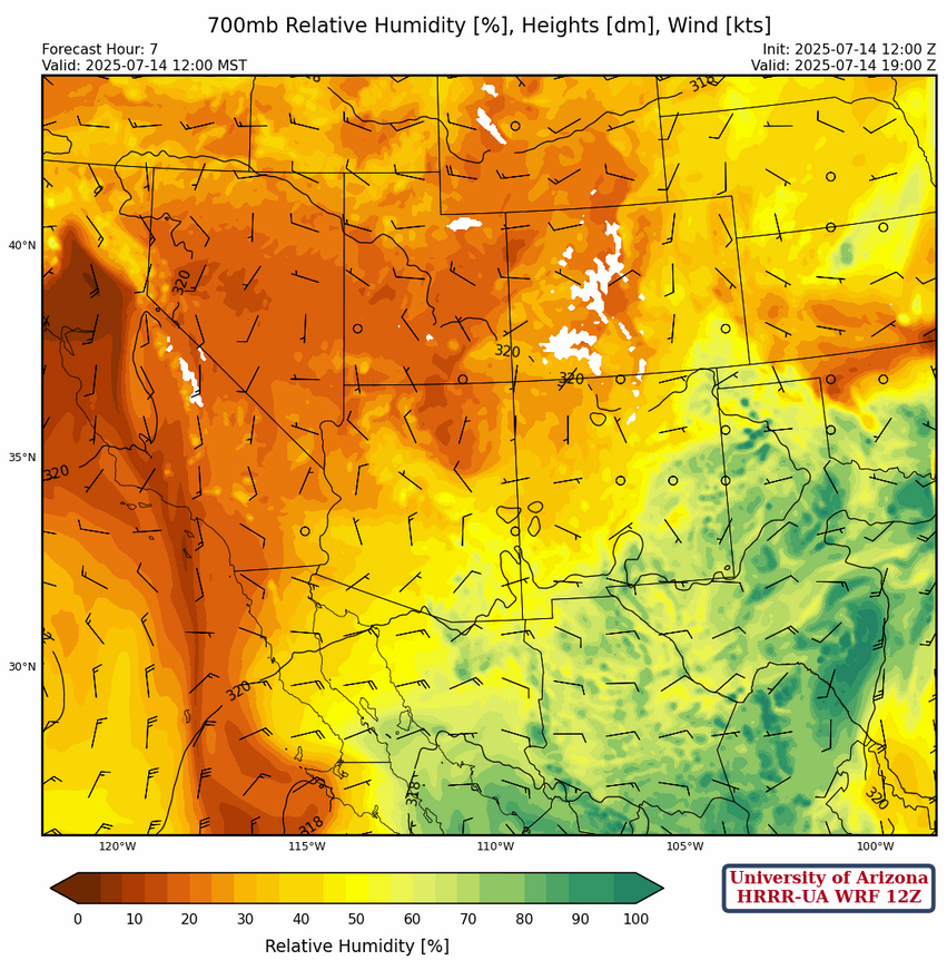 Storms will be a little later in the day compared to today; forming in the early afternoon, but only moving into Tucson around 6pm and up to Casa Grande by 8pm. It’s possible that Phoenix will get the storms, but neither the HRRR or GFS UA WRF forecasts bring precipitation into the valley of the dust.