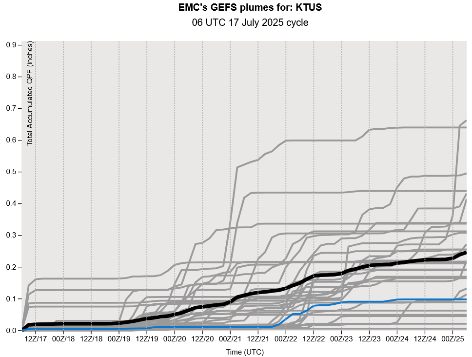 The GEFS plume forecasts for Tucson show good chances of about two rounds of thunderstorms over the next week.