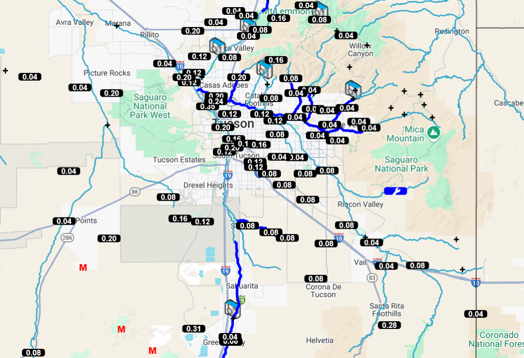 Some of the mountains did get over an inch of rain, but Tucson valley precipitation was closer to a quarter of an inch.