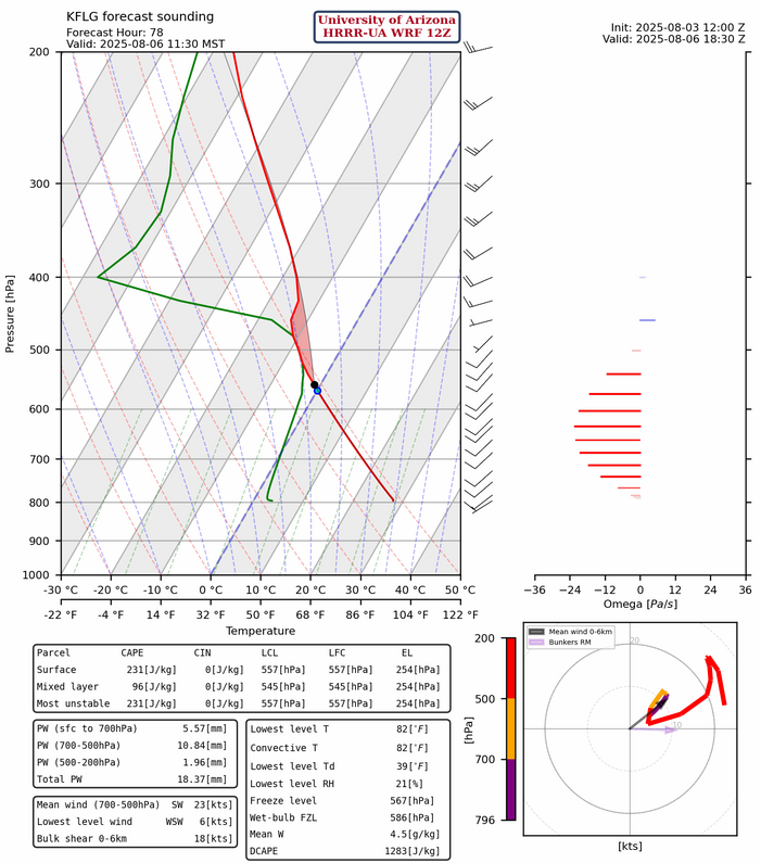 The Flagstaff forecast sounding below shows cloud tops will only be able to get up to 400mb.