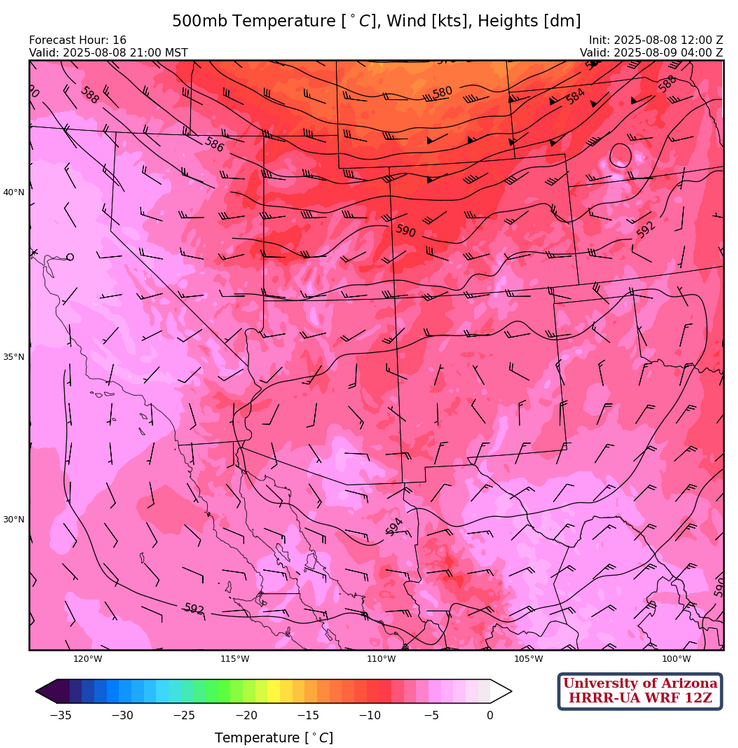 At 500 mb, the ridge axis extends west to east from north of Yuma to the White Mountains then across central New Mexico with eaaterly winds across southern Arizona and westerlies to the north.