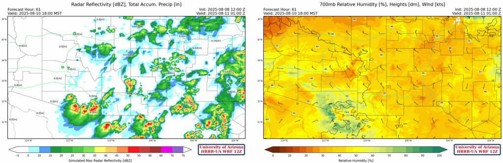 Spot the surge in moisture in the observations taken on UofA campus below.