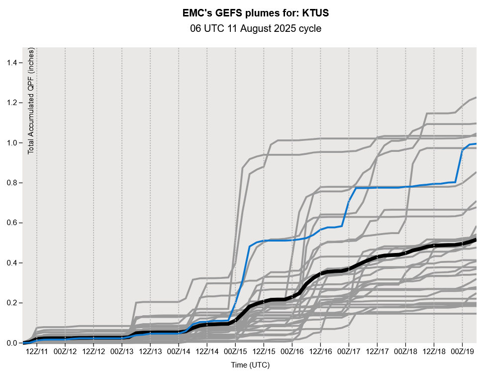 Both the ECMWF and GFS long-range models show a stronger event at the end of the week, half inch or so either Thursday (GFS) or Friday (ECMWF) depending on which model you look at. But looking at the GEFS plume for Tucson below, this is still very uncertain at this time.