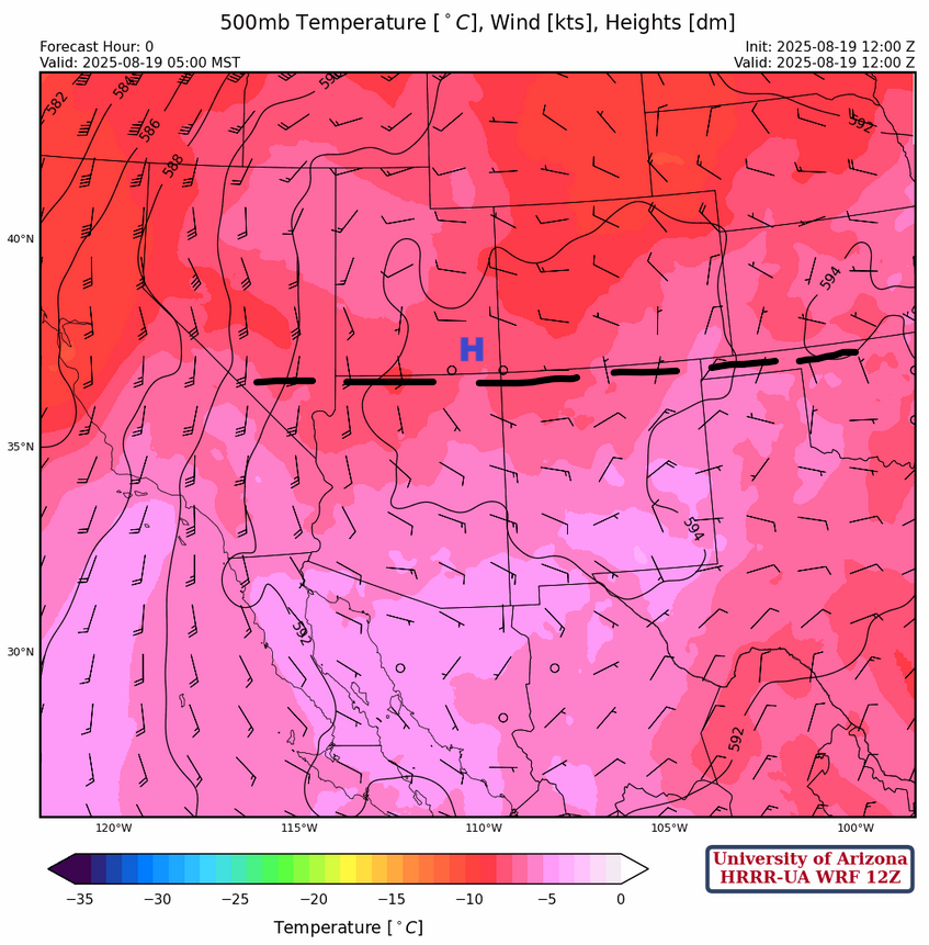 Thunderstorms will begin developing around 2 pm in southeast Arizona, but are forecast to dissipate as they move to the low desert overnight. The flow is too easterly for a true “Rim Shot”, but the flow may change and have a more northerly component over the next few days.