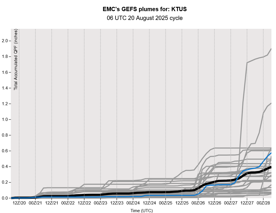 GEFS plume forecasts shows the next ramp up for Tucson isn’t until August 26th. The good and bad news is that both the ECMWF and GFS show a fair amount of precipitation due troughs/baroclinicity interacting with monsoon moisture the first week of September. Both models hint at the monsoon ending by September 5th.