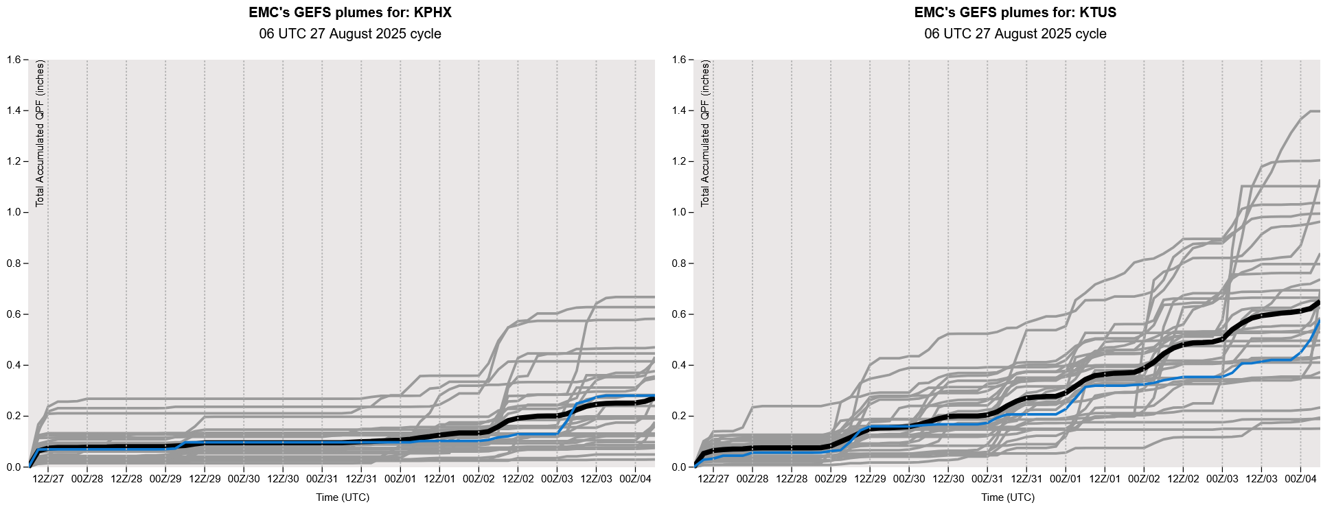 GEFS plume forecasts show that Phoenix should remain dry though the weekend. Some storms may occur in Tucson Friday into the weekend, but most likely staying south and east of the metro area.