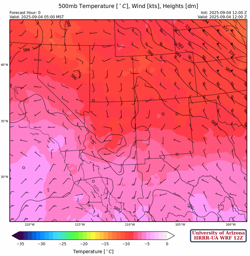 It is still cold aloft at 500mb with temperatures of –8°C at Phoenix. Such cold temperatures will support storm development this afternoon.