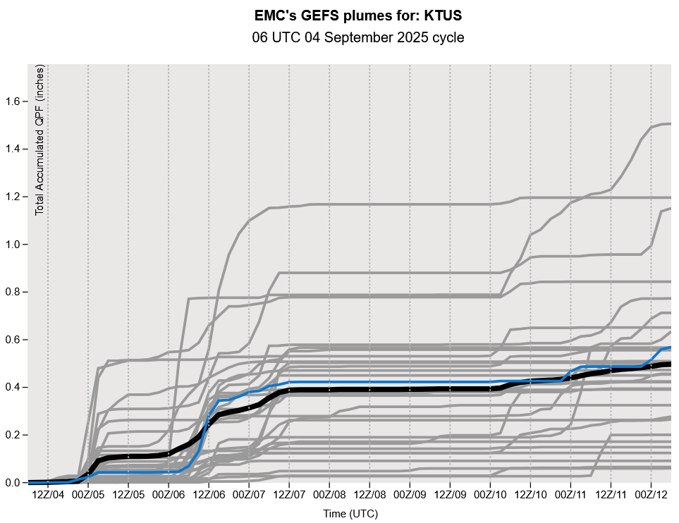 The GEFS plume forecast shows the monsoon is done on or around September 7th. The precipitation the following weekend, if it occurs, will be due to a cold front.